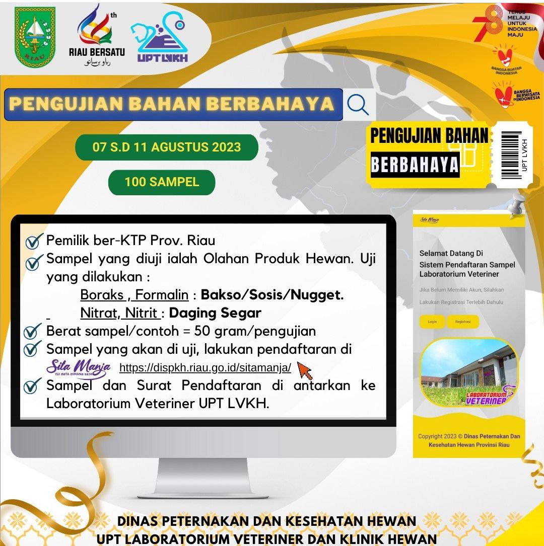 Pendaftaran Pengujian Bahan Berbahaya : https://dispkh.riau.go.id/sitamanja/